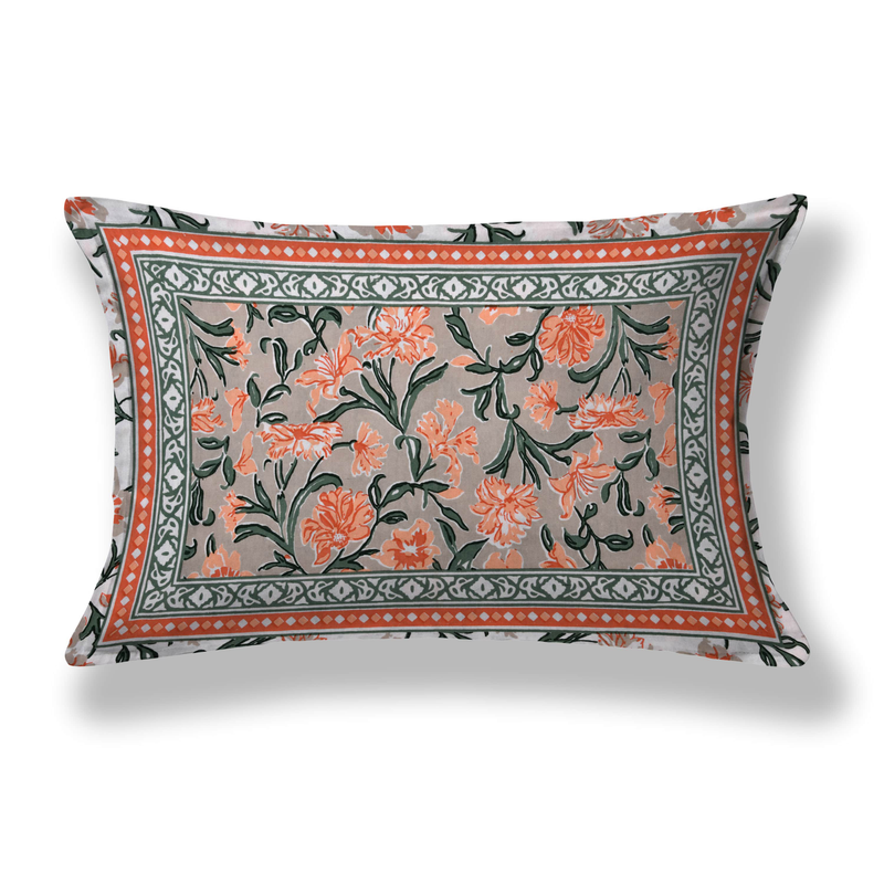 Pure Cotton Jaipuri Print Single Bedsheet with Pillow Cover (100% Cotton, Orange, 240 TC)